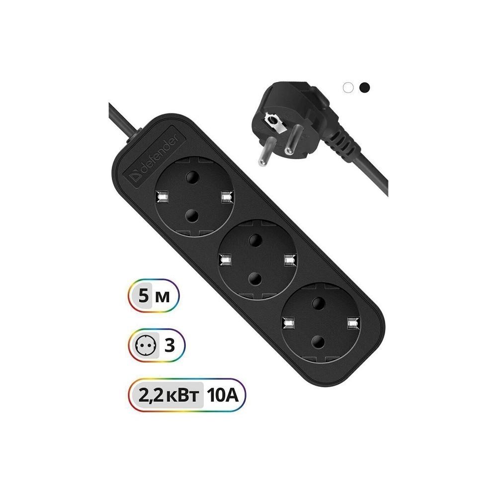 | Наименование | Удлинитель с заземлением Defender M350 5.0 м, 3 розетки, черный |
