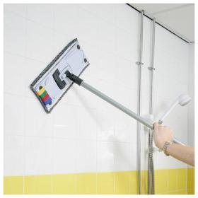 Высокая маневренность – поворотный механизм для удобства уборки потолков, вертикальных и труднодоступных поверхностей, таких как стены, плинтуса, лестницы, участки за радиаторами и унитазами. В плоскости держателя размещено большое количество точек давления на моп, для более плотного прилегания к полу.