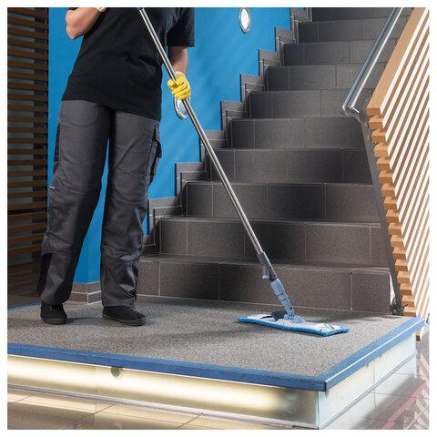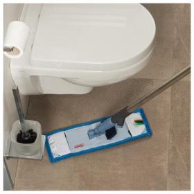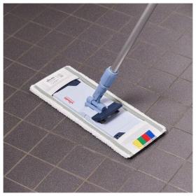 Держатель МОПа Vileda КомбиСпид Про 40 см пластик серый (артикул производителя 143573) Конструкция держателя позволяет использовать мопы, как на ремнях, так и на карманах. Держатель стал легче и эргономичнее. Большая педаль для открытия держателя. Симметричная ось, а также гладкие и тонкие края держателя позволяет быстрее одевать моп. Широкий угол наклона крепления позволяет мыть даже труднодоступные места. Подходит для работы как с вертикальным, так и с роликовым отжимами. Может использоваться как с насадками системы Vileda Professional Комби Спид, так и с 40/50 см насадками других производителей, снабженными карманами. Перед началом работы убедитесь, что закручивающееся кольцо хорошо затянуто, а Е-образный фиксатор не выпал и не сломан. После окончания работы сполосните держатель проточной струей воды для удаления абразивных частиц из соединительного узла. Размер: 40 см Вес: 390 гр. Состав: полипропилен. Метод уборки: влажная уборка.