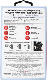 Особенности Магнитный захват (усиленные магниты) Быстрая беспроводная зарядка Защита от перегрузки по току, перегрева Поддержка QC3.0