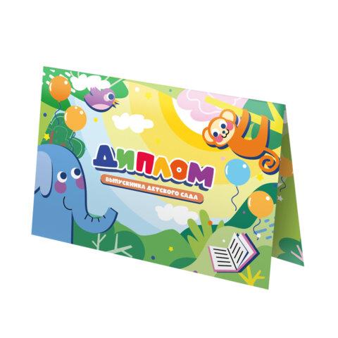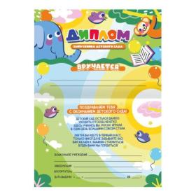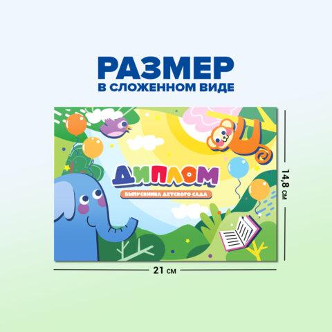 Диплом Выпускнику детского сада предназначен для награждения детей по окончании детских садах.Диплом изготовлен из качественного картона формата 210х297мм. Диплом в сложенном виде имеет формат А5, имеет детский дизайн, который подчеркнет торжественность момента. Этот документ станет символом достижений и успехов ребенка в детском саду, а также приятным напоминанием о прошедших годах. Диплом станет ценным сувениром, который будет храниться долгие годы, напоминая о радостных моментах детства и первых шагах в мир знаний.