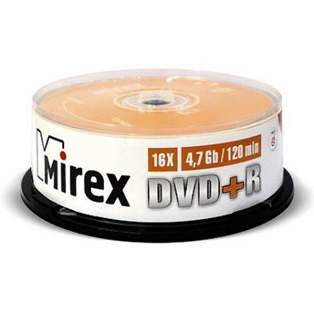 Оптический записываемый диск DVD+R Mirex 4.7 Гб 16х. Совместим со всеми распространёнными DVD-ROM приводами и DVD- устройствами записи и проигрывания. Упаковка Cake Box. В упаковке 25 шт.