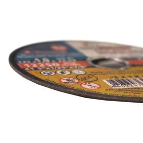 Круг отрезной армированный изготовлен из электрокорунда нормального на основе бакелитовой связки с армированием предназначен для ручных резчиков. Применяется для высокопроизводительной резки деталей и конструкций из различных марок стали, нержавеющей стали и быстрорежущей стали. Круг особенно эффективен при резке тонкостенного профиля и листового металла.<BR>Посадочный диаметр: 22.23 мм.<BR>Толщина: 1 мм.<BR>Диаметр наружный, мм: 125 мм.<BR>Рабочая скорость кругов, м/сек: 80.<BR>Тип круга: прямой профиль.<BR>Шлиф.материал: A54.<BR>Твердость: S.