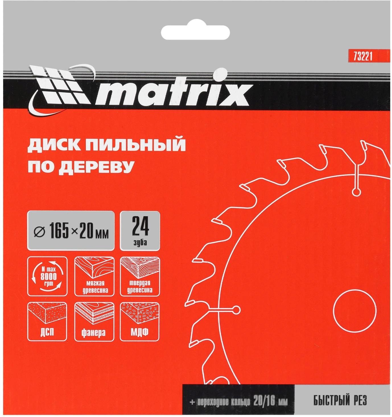 | Особенности | Пильный диск по дереву Matrix ф165х20 мм. 73221 с 24 зубьями и переходным кольцом 20/16 применяется в качестве оснастки на циркулярных и торцовочных пилах с соответствующим внутренним и внешним диаметром. |