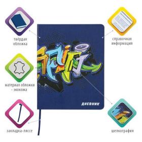 Дневник 1-11 класс 48 л., кожзам (твердая), шелкография, BRAUBERG, "ГРАФФИТИ", 105990 / 4dealer.ru