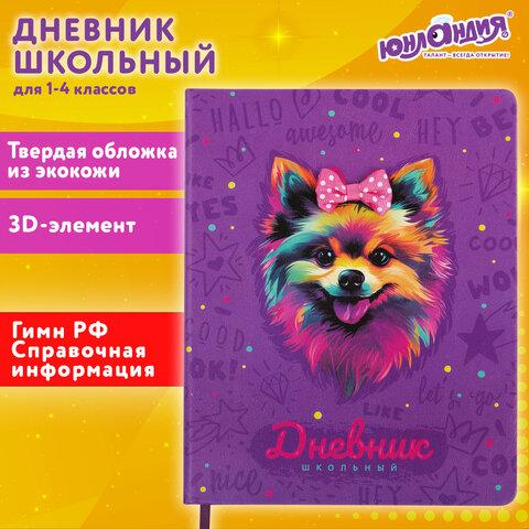 Дневник 1-4 класс 48 л., кожзам (твердая), 3D-элемент, ЮНЛАНДИЯ, "Собачка", 106930 / 4dealer.ru