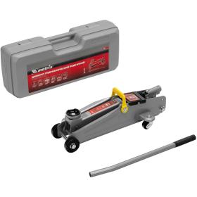 Домкрат гидравлический подкатной Matrix 2 тонны 135-385 мм в кейсе (51028)<br><br>Подкатной гидравлический домкрат Matrix 51028 с высотой подхвата 135 мм, поставляющийся в пластиковом кейсе, — полупрофессиональное гаражное оборудование, способное поднимать груз массой до 2 т на высоту до 385 мм. Высота подхвата 135 мм позволяет использовать домкрат для автомашин со стандартным клиренсом. Домкрат будет полезен как в автомастерской, так и в частном гараже.<br><br>Преимущества<br>• Надёжность — усиленная конструкция выдерживает интенсивное использование.<br>• Коррозионная стойкость — на инструмент нанесено защитное покрытие.<br>• Безопасная эксплуатация — предохранительный клапан препятствует подъёму груза массой более 2 т, предотвращая поломку домкрата.<br>• Мобильность — благодаря транспортировочной ручке домкрат удобно перемещать по рабочей зоне.<br>• Компактность — домкрат размером 535×225×140 мм легко помещается в багажник автомобиля.<br>• Удобное хранение и транспортировка — домкрат поставляется в пластиковом кейсе.<br><br>Внешний вид и/или характеристики товара могут быть изменены производителем в соответствии с производственным процессом.