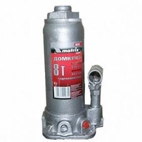 Домкрат гидравлический бутылочный Matrix 8 тонн 230-457 мм (50723)<br><br>Домкрат гидравлический бутылочный Matrix 50723 используется для поднятия грузов массой до 8 т на высоту 230-457 мм. Подходит для автомобилей с высоким клиренсом. Домкрат будет полезен автолюбителям в гараже и дороге, а также сотрудникам СТО.<br><br>Преимущества<br>— Защита от перегрузок — клапан безопасности предотвращает подъем груза массой более 8000 кг.<br>— Широкий диапазон применения — усиленный винт позволяет вручную увеличить высоту подъёма на 60 мм.<br>— Надёжная конструкция — домкрат имеет устойчивое чугунное основание, корпус из высокопрочной стали, а также полированный шток, увеличивающий срок службы.<br>— Устойчивость к износу — благодаря трапециевидной резьбе увеличительный винт выдерживает многократное использование.<br>— Ремонтопригодность — при необходимости корпус можно снять со станины.<br>— Защита от коррозии — на корпус нанесено фосфатное покрытие.<br>— Высококачественное всесезонное масло — домкрат безотказно работает в широком диапазоне температур (от −20 до 45 ).<br>— Простое обслуживание — заменить масло можно самостоятельно, сняв пробку заливного отверстия.<br>— Эффективность — чугунная станина обеспечивает устойчивое положение домкрата, составная рукоятка позволяет проводить работы в ограниченном пространстве и компактно размещать устройство в зоне хранения. <br><br>Внешний вид и/или характеристики товара могут быть изменены производителем в соответствии с производственным процессом.