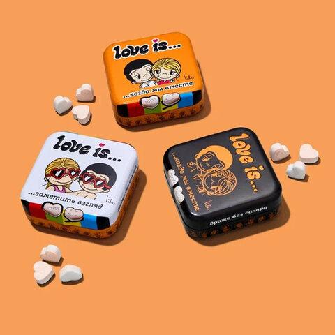 Освежающие конфеты "Love Is" в форме сердца со вкусом маракуйя представляют собой уникальное сочетание вкуса и формы. Каждая конфета выполнена в форме сердца, что делает их отличным подарком для любимого человека.Состав: подсластители (сорбит, сукралоза), регулятор кислотности - яблочная кислота, антислёживающий агент Е470b, соль, охлаждающий агент - натуральный ментол, краситель Е110, Е129, ароматизатор (маракуйя). Пищевая ценность на 100 г продукта (средние значения): белки - 0 г, жиры - 0,8 г, углеводы - 97,4 г, в том числе сахар - 0 г. Энергетическая ценность (калорийность) 100 г продукта: 1685 кДж (403 ккал). Содержит подсластители.