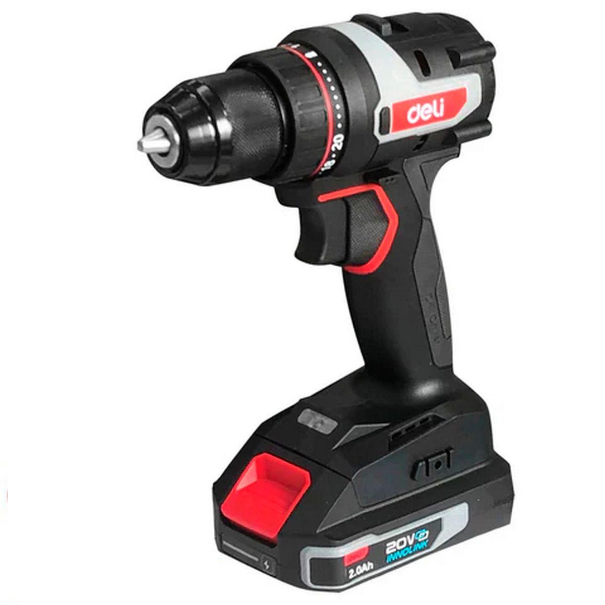 Дрель-шуруповерт аккумуляторная DeliDE-DZ20-1D2 (2 АКБ*2Ач+ЗУ, 20В, 10мм, 50Нм, сумка)