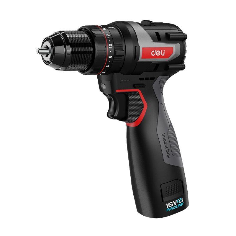 Дрель-шуруповерт аккумуляторная ударная Deli DE-CZ16-1A2 (1 АКБ*2Ач+ЗУ, 16В, 45Нм, сумка)