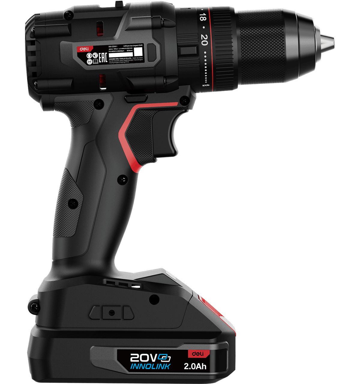 Дрель-шуруповерт аккумуляторная ударная Deli DE-CZ20-1D2 (2 АКБ*2Ач+ЗУ, 20В, 13мм, 70Нм, сумка) / 4dealer.ru