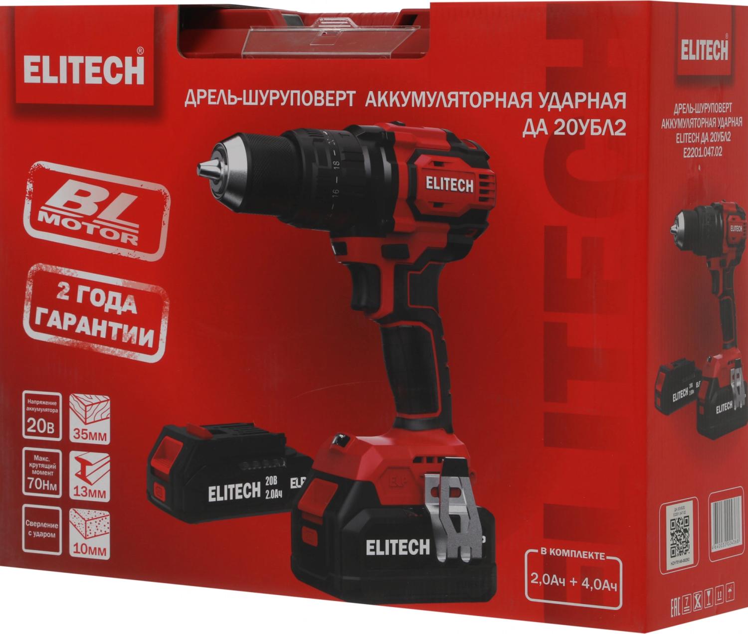 Дрель-шуруповерт Elitech ДА 20УБЛ2 (E2201.047.02) аккум. патрон:быстрозажимной (кейс в комплекте) (205680) / 4dealer.ru