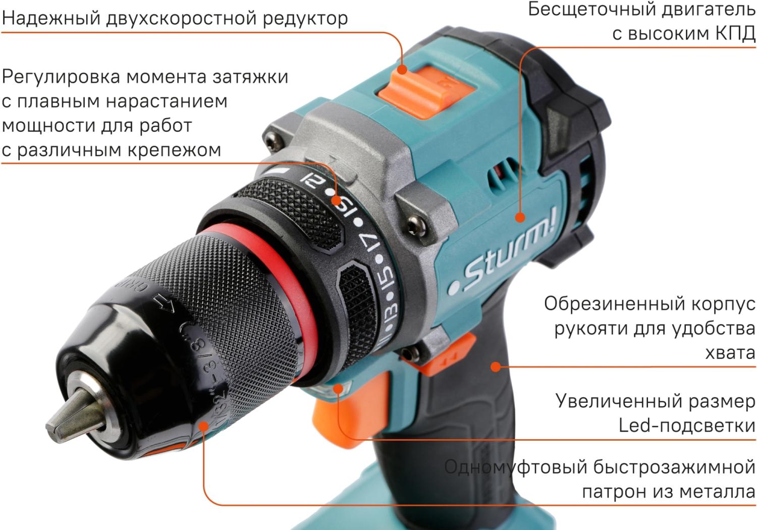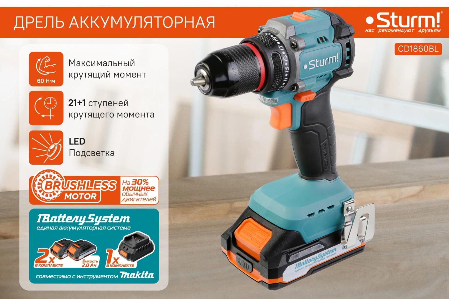 Дрель-шуруповерт Sturm! CD1860BL аккум. патрон:быстрозажимной (кейс в комплекте) / 4dealer.ru