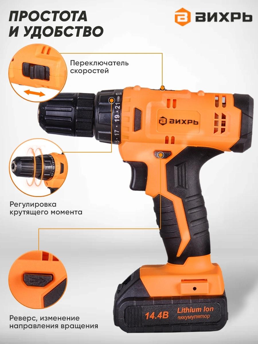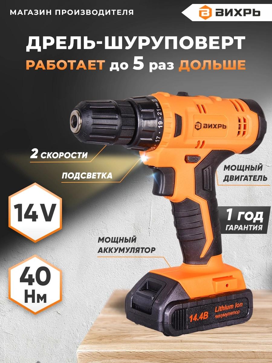 Дрель-шуруповерт Вихрь ДА-14,4Л-2 аккум. патрон:быстрозажимной (72/14/15) / 4dealer.ru