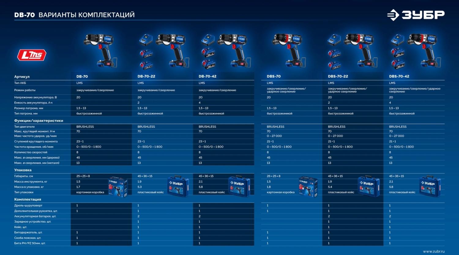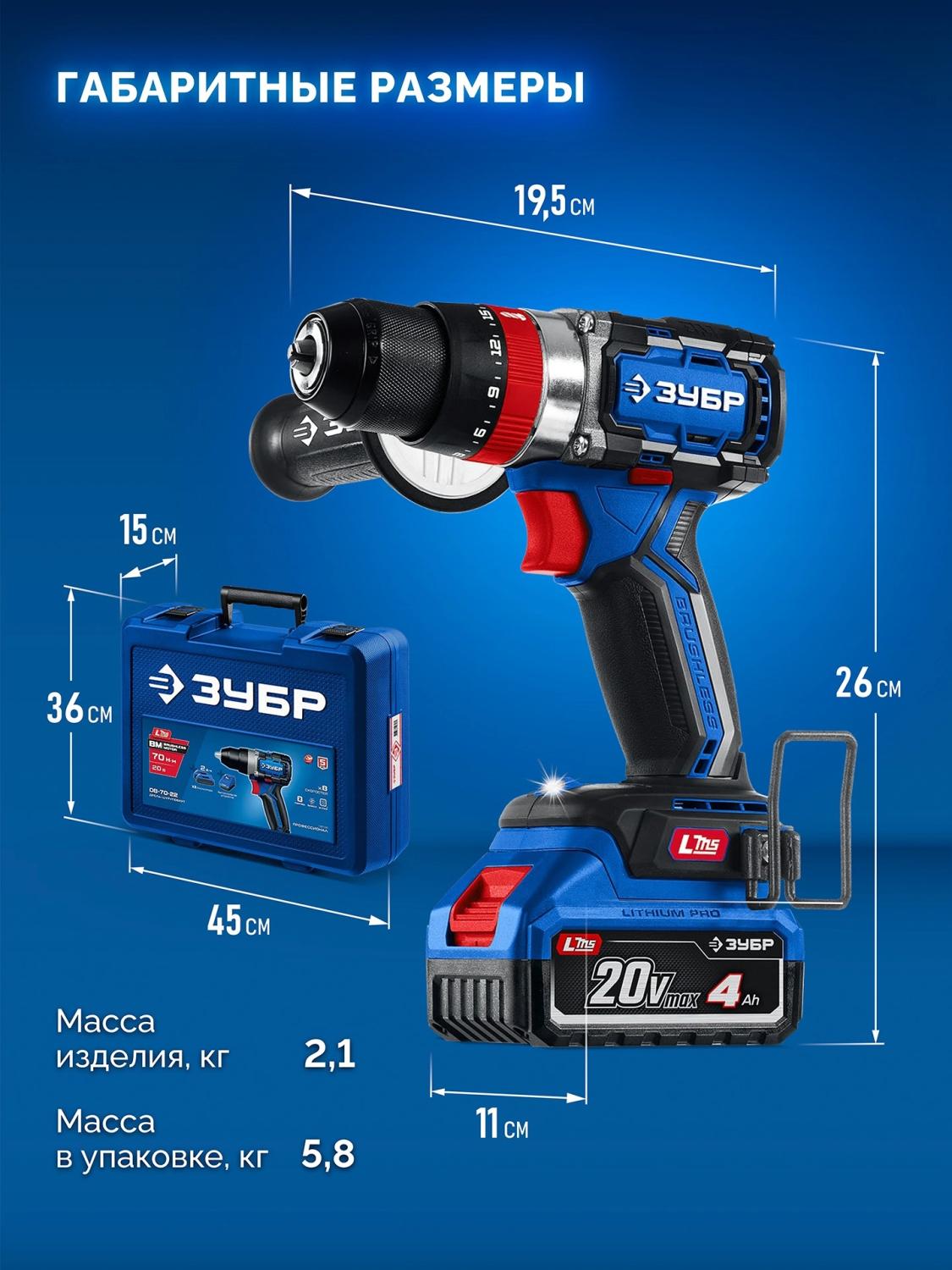 | Комплект поставки | Дрель-шуруповерт, аккумулятор - 2 шт., зарядное устройство, рукоятка дополнительная, скоба поясная; бита 50 мм. PH, PZ; битодержатель, кейс, руководство по эксплуатации. |