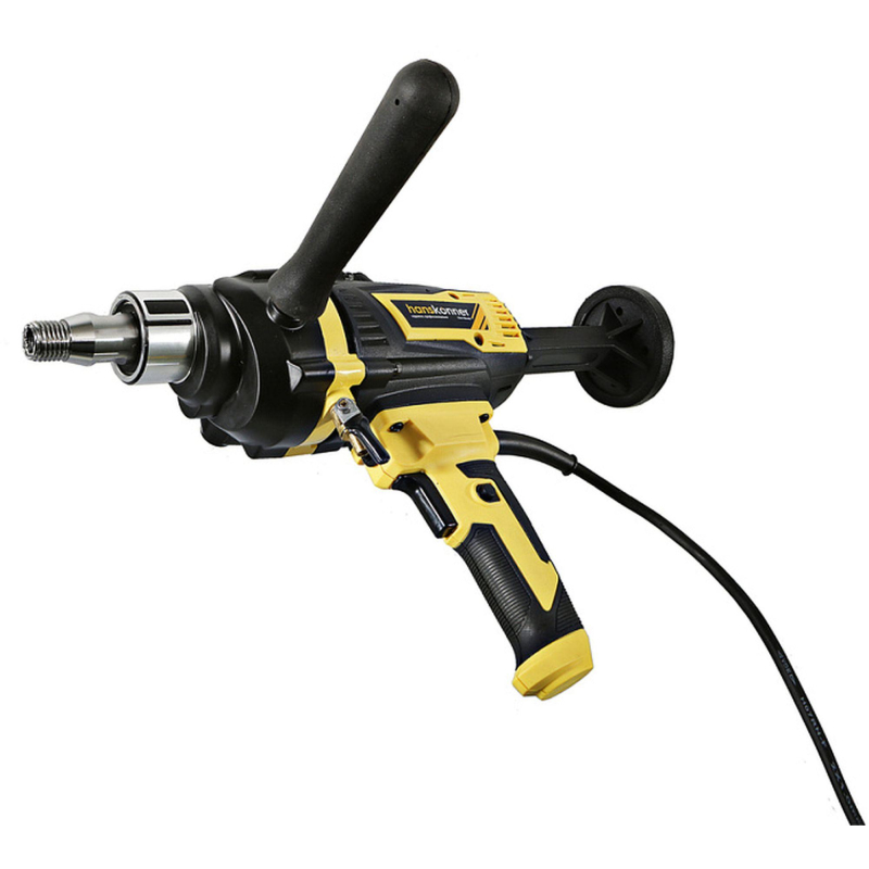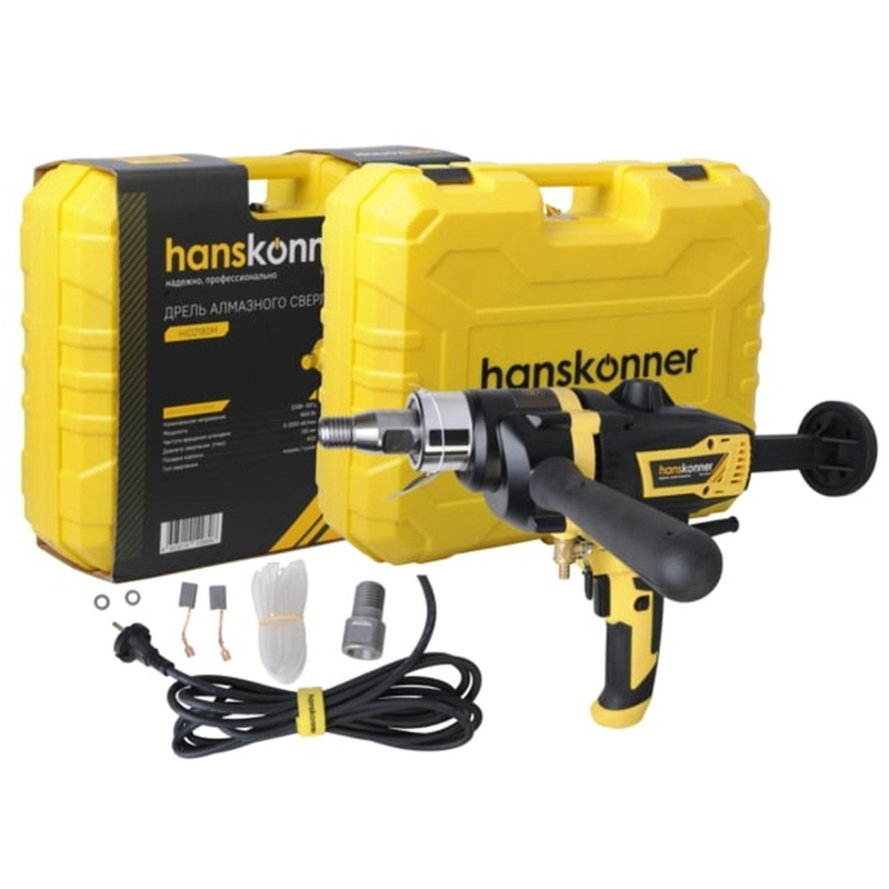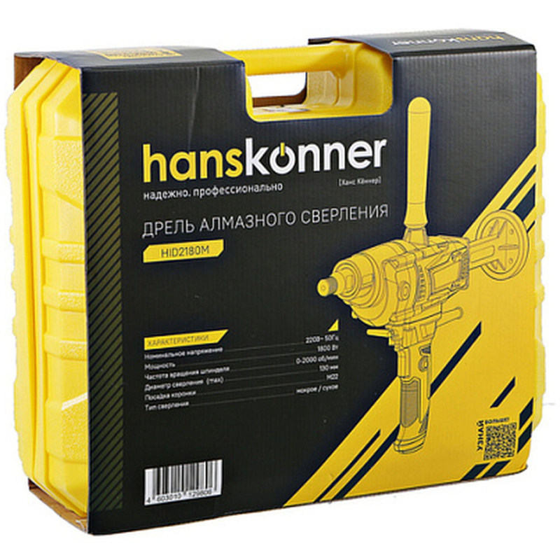 Дрель сетевая Hanskonner HID2180M - компактный и мощный электроинструмент с надежной конструкцией для сверления алмазными коронками отверстий в таких материалах: бетон, железобетон, искусственный и натуральный камень, кирпич. Подключив инструмент к водопроводному крану можно сократить запыленность рабочей зоны, а также износ алмазных коронок и дрели. Данная модель оснащена предохранительной муфтой, срабатывающей при заклинивании коронки, и термозащитой работающей при других видах перегруженности. Применение в конструкции фирменных японских подшипников NSK повышенного ресурса способствует исправной и долговечной эксплуатации электроинструмента. Удобству в практическом обращении с дрелью содействует адаптер под алмазные коронки с хвостовиком 1 1/4", идущий в комплекте, фиксатор-липучка расположенный на кабеле и блокировка выключателя во включенном положении при длительных работах. Регулировка частоты вращения осуществляется усилием, приложенным к кнопке включения.Морозостойкий резиновый сетевой кабель длинной 4 м, позволяет охватить рабочую зону площадью 50 м². Комплектация:- Дрель- Боковая ручка- Адаптер для алмазных коронок 1 1/4"- Задняя ручка- Уплотнительное кольцо (2 шт.)- Шланг подачи воды- Винт (4 шт.)- Угольная щетка 1 комплектВнешний вид и/или характеристики товара могут быть изменены производителем в соответствии с производственным процессом.