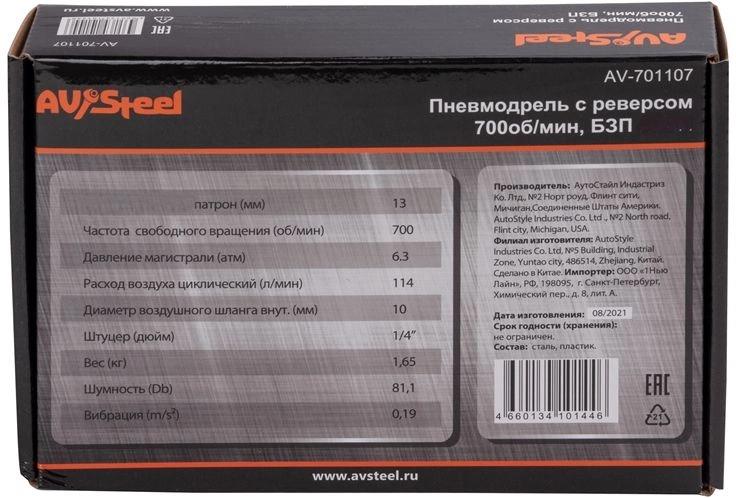 Дрель прямая Av Steel AV-701107 114л/мин патр.:быстрозажимной оранжевый/черный / 4dealer.ru