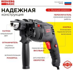 Дрель ударная RedVerg ID500 Basic 500Вт ключевой реверс (ID500) / 4dealer.ru