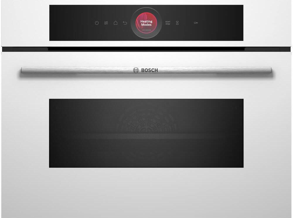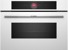 Встраиваемый духовой шкаф Bosch CMG7241W1, белый цвет компактными габаритами 45,5x59,5x54,8 см оснащен откидной дверью с амортизаторами SoftOpen, SoftClose и вставками из термостойкого стекла (три слоя). Камера вместительностью 45 л укомплектована трехуровневыми телескопическими направляющими для установки противней и LED-лампой.