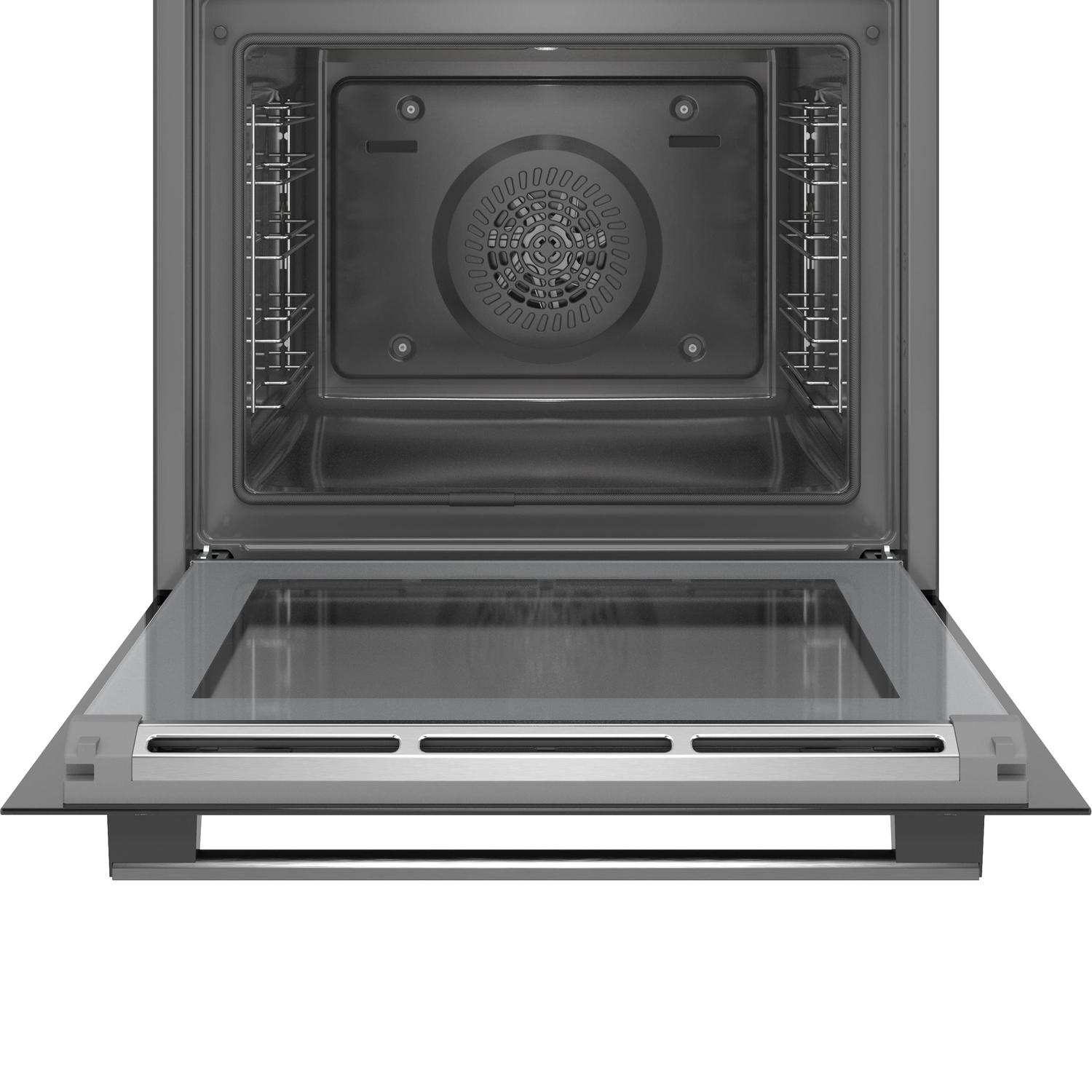 Духовой шкаф Bosch HBA578BB0 оснащена функцией 3D-горячий воздух, она равномерно распределяет жар на всех 3 уровнях приготовления. Благодаря многофункциональным часам Easy Clock можно с легкостью отслеживать время до окончания работы. Специальное покрытие EcoClean расщепляет брызги жира во время приготовления, благодаря чему уход становится проще.