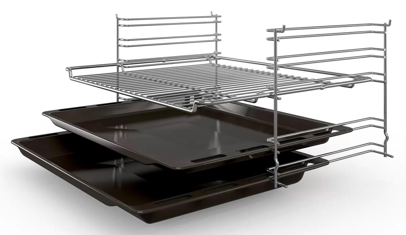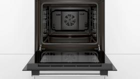 Встраиваемый духовой шкаф BOSCH HBF011BR0Q можно установить отдельно от варочной поверхности. Объем устройства составляет 66 л. Благодаря этому и надежным направляющим можно готовить большие порции, использовать несколько противней одновременно.
