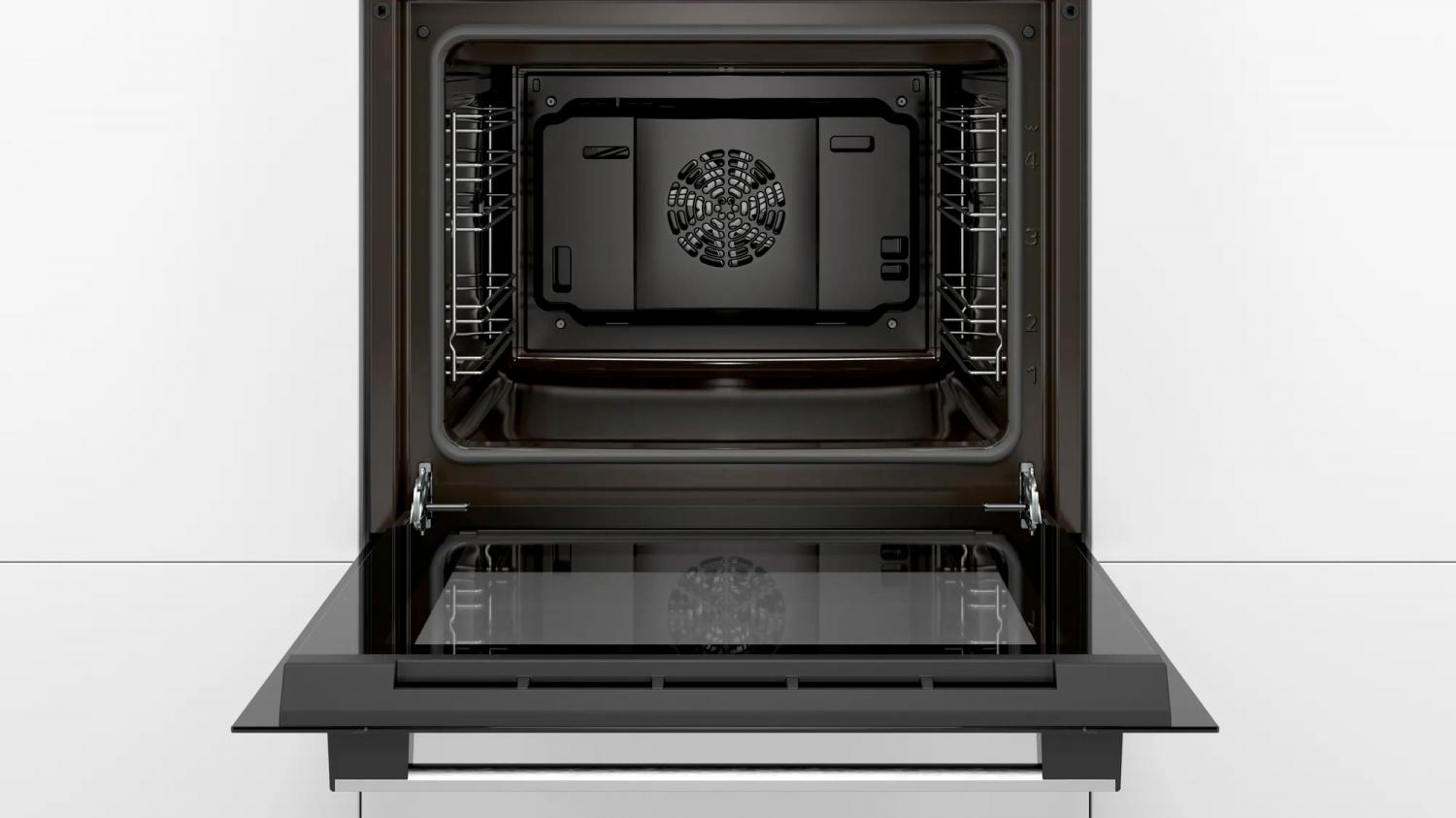 Внутреннее эмалевое покрытие и очистка паром AquaClean позволяют легко убрать жир, остатки пищи и нагар в духовом шкафу.