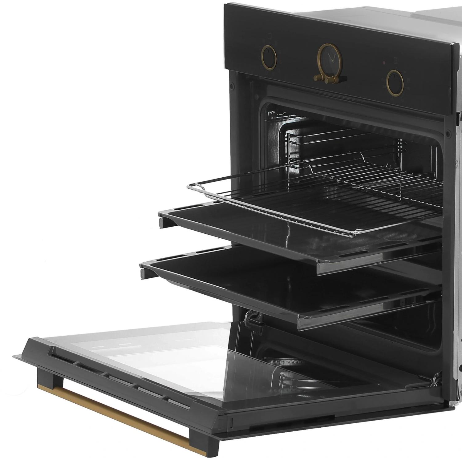 | Особенности конструкции | полностью стеклянная внутренняя поверхность дверцы духовки, телескопические направляющие |
