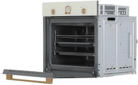 | Особенности конструкции | полностью стеклянная внутренняя поверхность дверцы духовки, телескопические направляющие, утапливаемые переключатели |