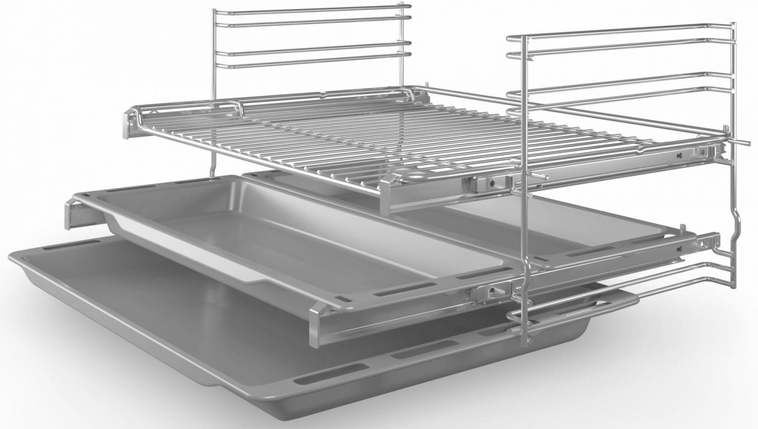 Наша система телескопов безопасна и проста в использовании. Гораздо проще размещать еду на тех уровнях, которые оснащены телескопическими направляющими. Вам больше не нужно тянуться в горячую духовку, чтобы проверить статус приготовления.
