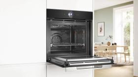 Встраиваемый духовой шкаф Bosch HMG776NB1 оборудован цветным сенсорным дисплеем, на котором отображаются все параметры и время. С помощью таймера можно запрограммировать устройство для автоматического отключения в заданное время.