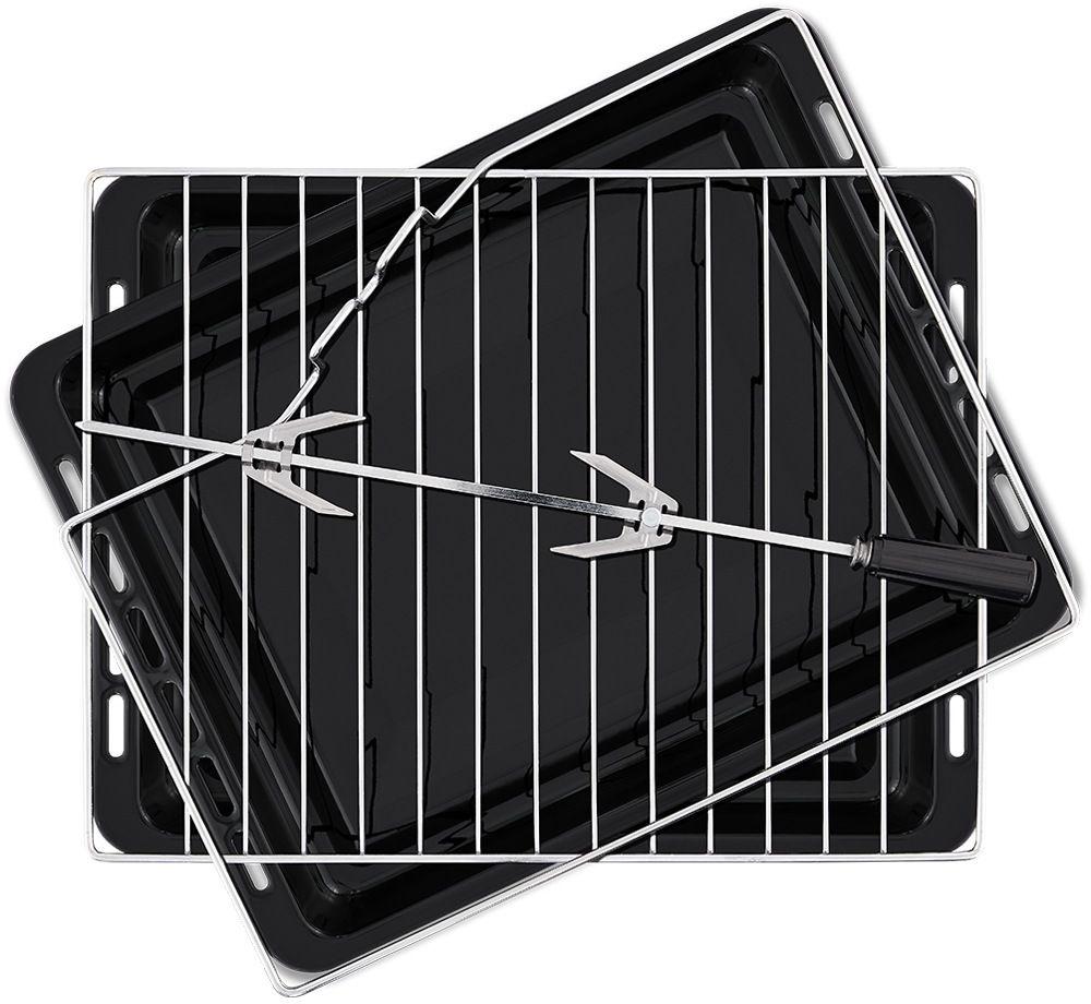 | Особенности конструкции | вентилятор охлаждения, вертел, дисплей, полностью стеклянная внутренняя поверхность дверцы духовки, телескопические направляющие |