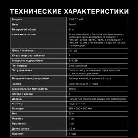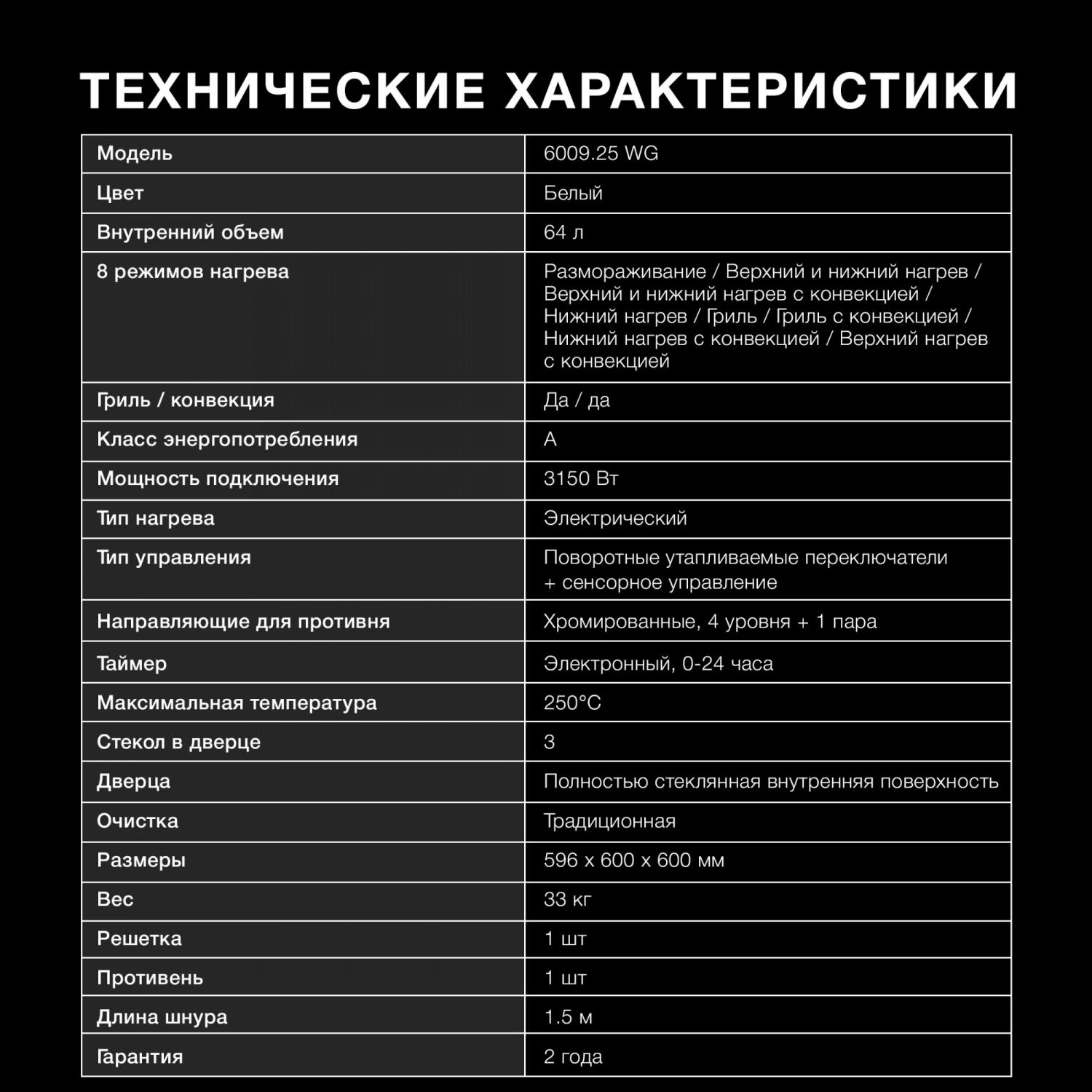 | Особенности конструкции | вентилятор охлаждения, дисплей, телескопические направляющие, электронный программатор |