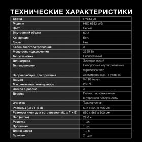 Духовой шкаф электрический Hyundai HEO 6632 WG Внешний вид и/или характеристики товара могут быть изменены производителем в соответствии с производственным процессом.