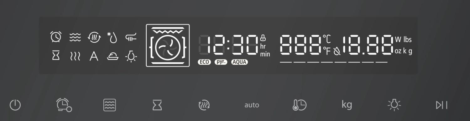 | Особенности конструкции | вентилятор охлаждения, дисплей, полностью стеклянная внутренняя поверхность дверцы духовки, электронный программатор |