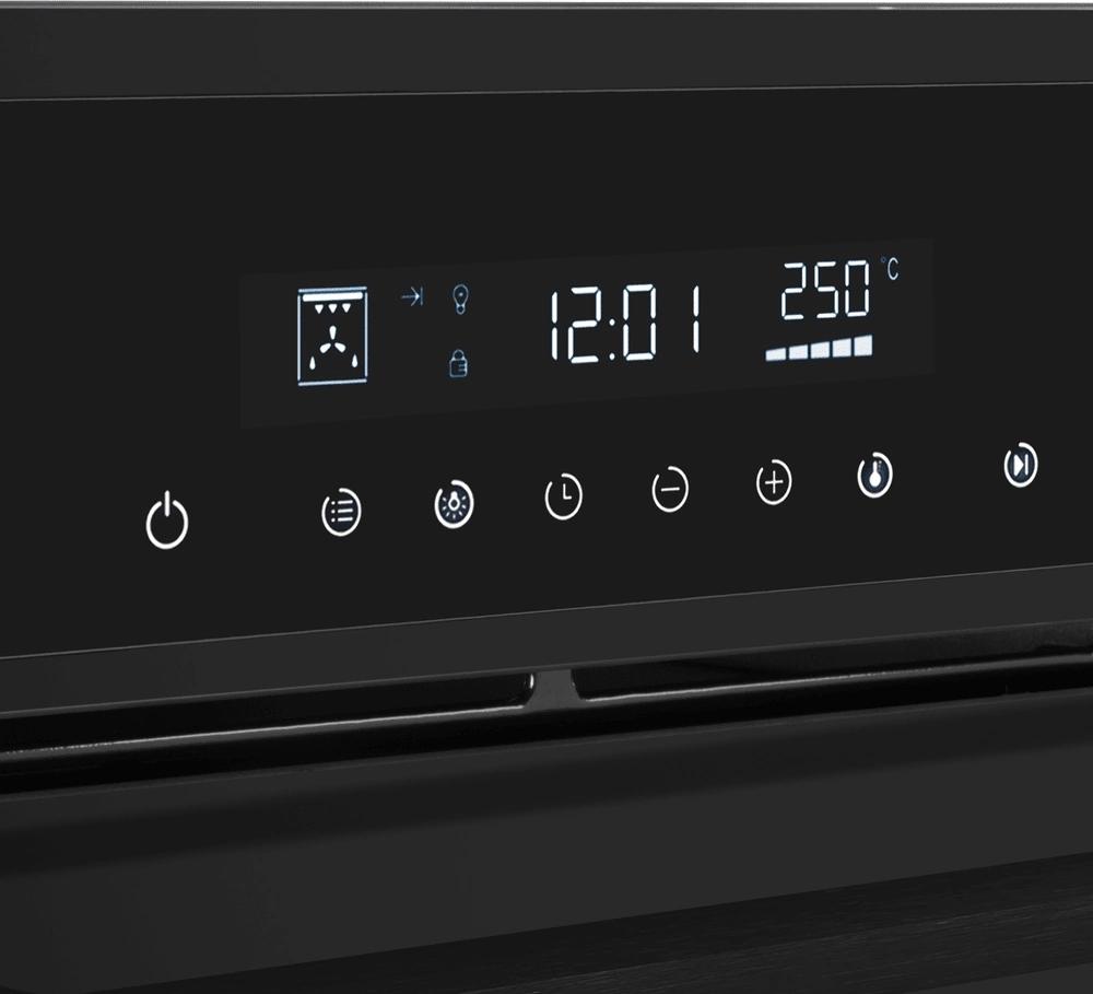 | Особенности конструкции | вентилятор охлаждения, дисплей, полностью стеклянная внутренняя поверхность дверцы духовки |