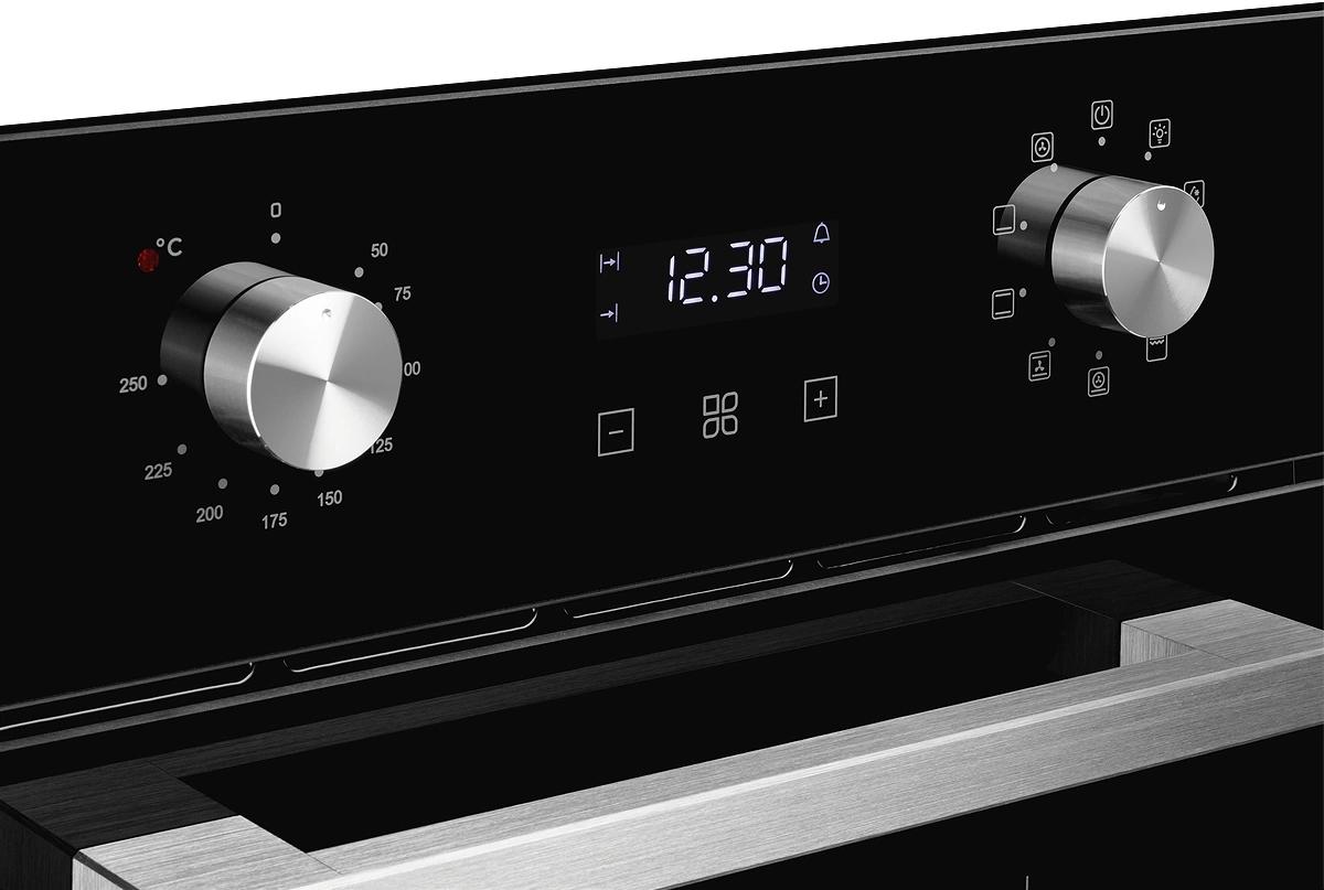 | Особенности конструкции | вентилятор охлаждения, дисплей, полностью стеклянная внутренняя поверхность дверцы духовки |