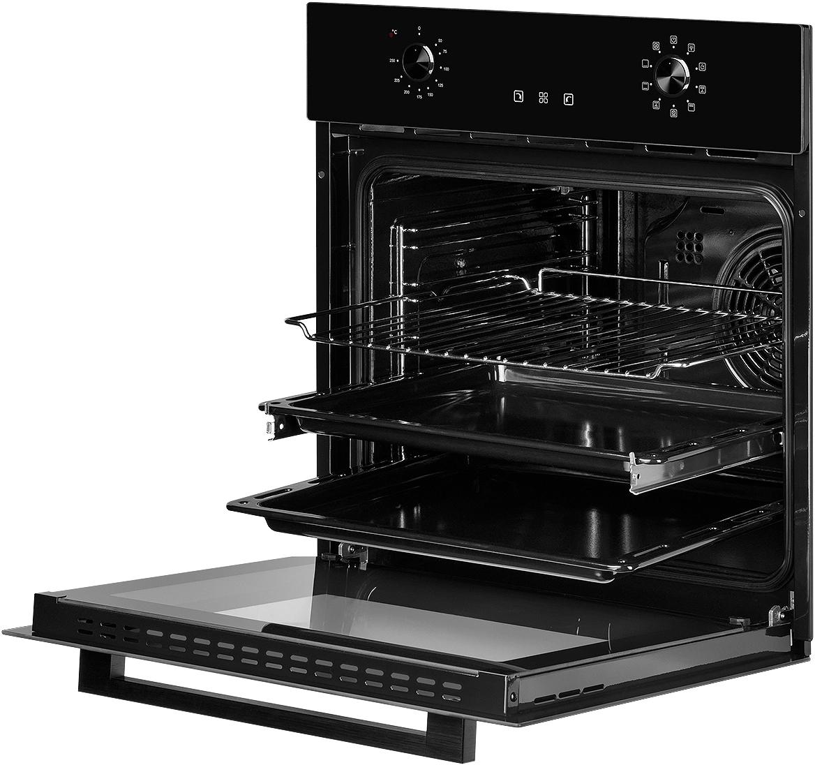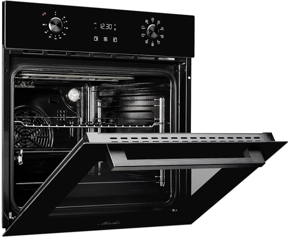 | Особенности конструкции | вентилятор охлаждения, дисплей, полностью стеклянная внутренняя поверхность дверцы духовки, телескопические направляющие, утапливаемые переключатели |