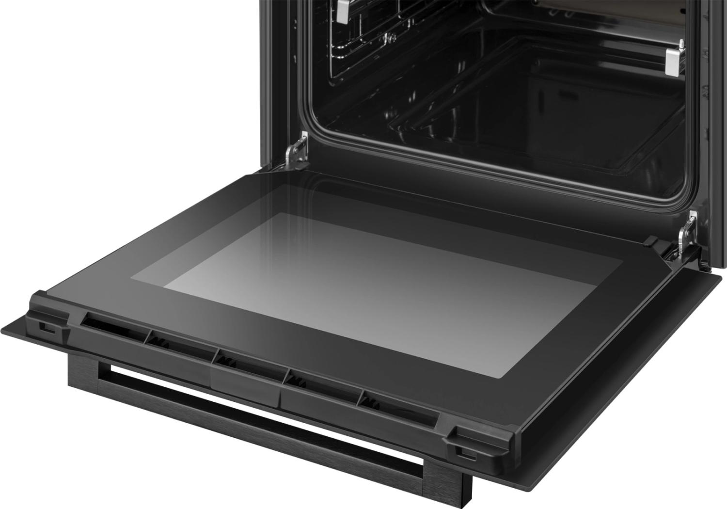 | Особенности конструкции | дисплей, полностью стеклянная внутренняя поверхность дверцы духовки, телескопические направляющие, утапливаемые переключатели |