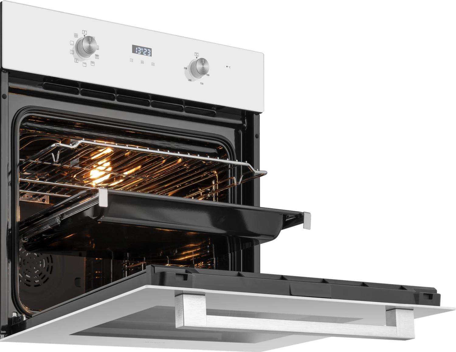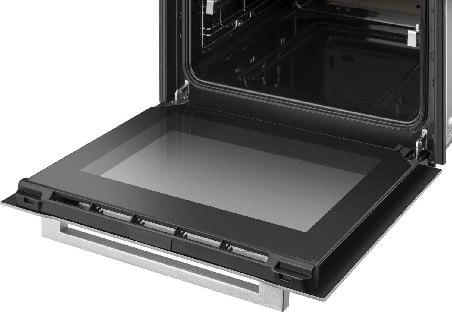 | Особенности конструкции | дисплей, полностью стеклянная внутренняя поверхность дверцы духовки, телескопические направляющие, утапливаемые переключатели |