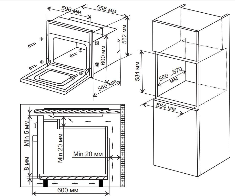 | Размеры для встраивания | 56.4x56x58.4см |