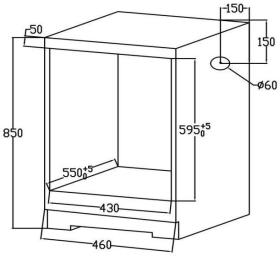 Размеры для встраивания 430x55x59.5см