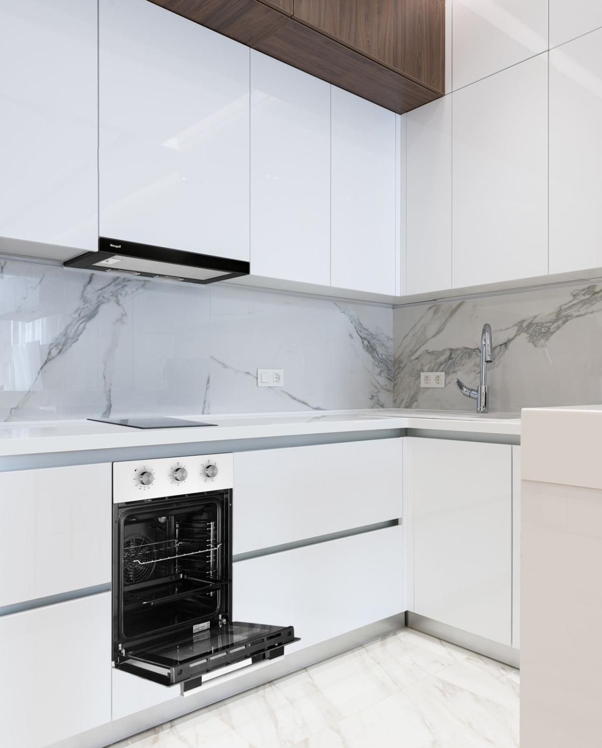 | Особенности конструкции | полностью стеклянная внутренняя поверхность дверцы духовки |