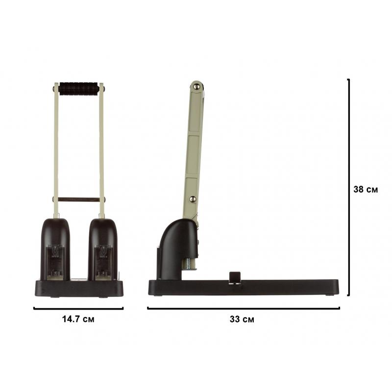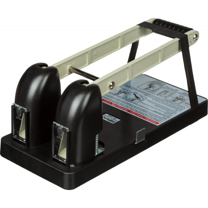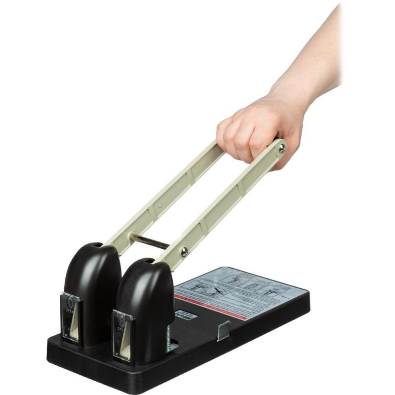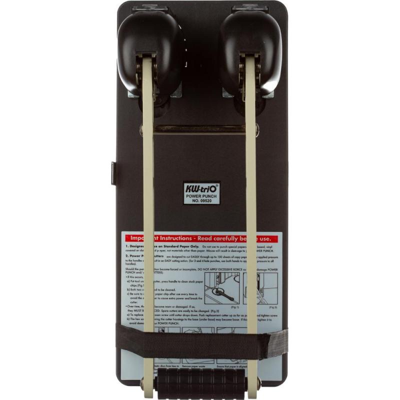 Мощный дырокол <nobr>KW-Trio</nobr> 952 пробивает одновременно до 150 листов 80 г/м2 благодаря механизму с использованием полых режущих элементов. <BR>Перфорирует два отверстия диаметром 6 мм, расстояние между отверстиями — 80 мм. В дыроколе предусмотрен отсек для конфетти и выдвижная линейка. Выполнен в металлическом и пластиковом корпусе черного цвета. Легкое и прочное нейлоновое основание. <BR>Возможностть заменны ножей и дисков (арт.141402, 427393); размер 330×147×380 мм. <BR>Внимание! Перед применением внимательно ознакомьтесь с инструкцией по эксплуатации. Инструкция располагается на коробке дырокола или вложена в нее. Также инструкция доступна для скачивания. Для этого нажмите на стрелку под описанием.<BR>Метка центрироования отсутствует.<BR>Для эффективного пробивания максимально допустимого объема бумаги необходимо расположить дырокол на горизонтальной твердой поверхности, прикладывая усилия, плавно надавить на рычаг ( при необходимости двумя руками), разномерно распределяя усилия по поверхности рычага.