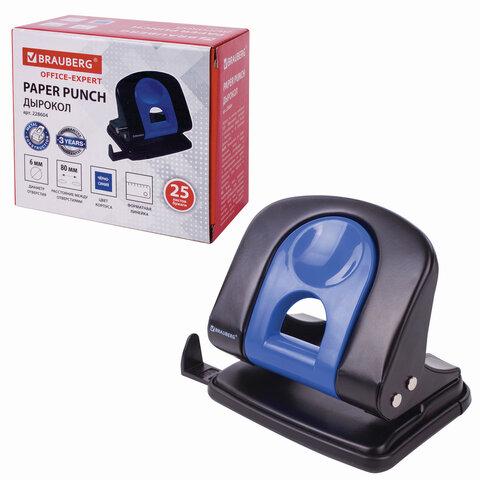 Дырокол металлический BRAUBERG "Office-Expert", до 25 листов, черно-синий, 228604 / 4dealer.ru