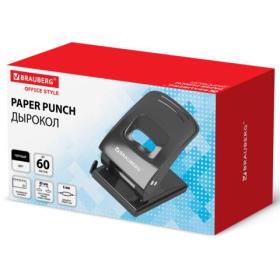 Дырокол BRAUBERG "Office style" – это необходимый офисный предмет, с помощью которого можно аккуратно пробивать отверстия в бумаге и затем подшивать документы в папку.Металлический дырокол эргономичного дизайна пробивает до 60 листов бумаги. Благодаря качественным пробойникам обеспечивает легкое и точное пробивание. Количество пробиваемых отверстий - 2, диаметр каждого - 6 мм, расстояние между отверстиями - 8 cм. Ограничительная линейка поможет пробить отверстия в нужных местах. Благодаря эргономичной форме поверхности дырокола руки не скользят во время работы. Классический черный цвет отлично впишется в любой интерьер.