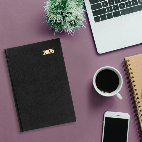 Датированный ежедневник STAFF - надежный спутник делового человека, который привык тщательно планировать свое время.Внутренний блок включает 160 листов белой бумаги плотностью 60 г/м2. Благодаря стандартному формату А5 (145х215 мм) ежедневник удобно использовать как в офисе, так и на выездных деловых встречах. Выполнен в строгом классическом черном цвете с тиснением. Жесткая книжная обложка, покрытая бумвинилом, делает данный ежедневник надежным и практичным в применении. Материал обложки подходит для тиснения фольгой.