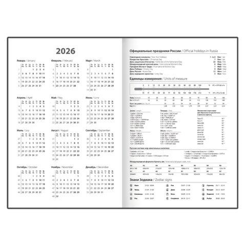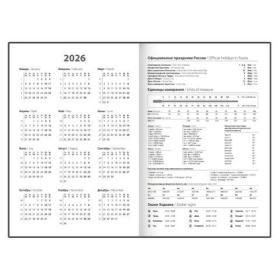 Ежедневник снабжен обширным справочным материалом. В конце имеется 1 страница для записей и заметок.