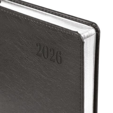 Датированный ежедневник BRAUBERG "Impression" выполнен в классическом дизайне. Непревзойденное качество исполнения подчеркивает солидность владельца этого делового аксессуара.Внутренний блок включает 168 листов белой бумаги плотностью 70 г/м2. Каждая страничка имеет перфорированный угол. Благодаря стандартному формату А5 (138х213 мм) ежедневник удобно использовать как в офисе, так и на выездных деловых встречах.