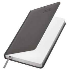 Твердая обложка стилизована под гладкую кожу серого цвета. Материал обложки подходит для горячего тиснения. Серебряный срез придает ежедневнику особый шарм. Дополнением является закладка-ляссе, с помощью которой при необходимости можно быстро открыть ежедневник на нужной странице. Ежедневник снабжен обширным справочным материалом. В конце имеются 4 страницы для записей и заметок.